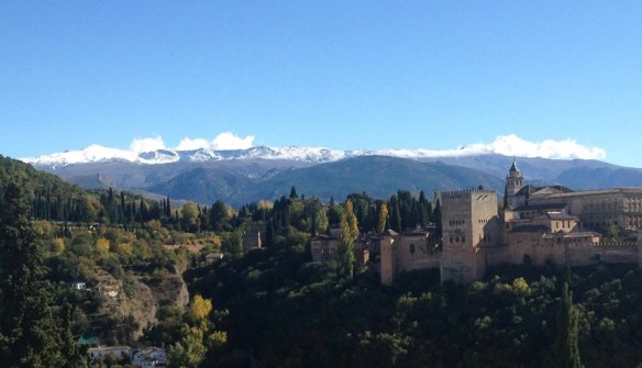 At my language school (Castila), my classroom has a view of the Alhambra Palace with the Sierra Nevada mountains as the backdrop. Each day in October I would ask my teachers when they thought the first snow would arrive on the mountains (the highest peak of the Sierra Nevada is Mulhacen at 3,478 metres in altitude). We decided to have a bet in the class to see who could guess the day of the first snowfall. My teacher guessed 12th November, another student the 10th December and I decided that I wanted it to snow on my birthday – 14th November. Since I always celebrate my birthday in the warmth of an Australian Spring, it seemed significant for the first snow to fall on my birthday. And what do you know? This is what we woke up to!